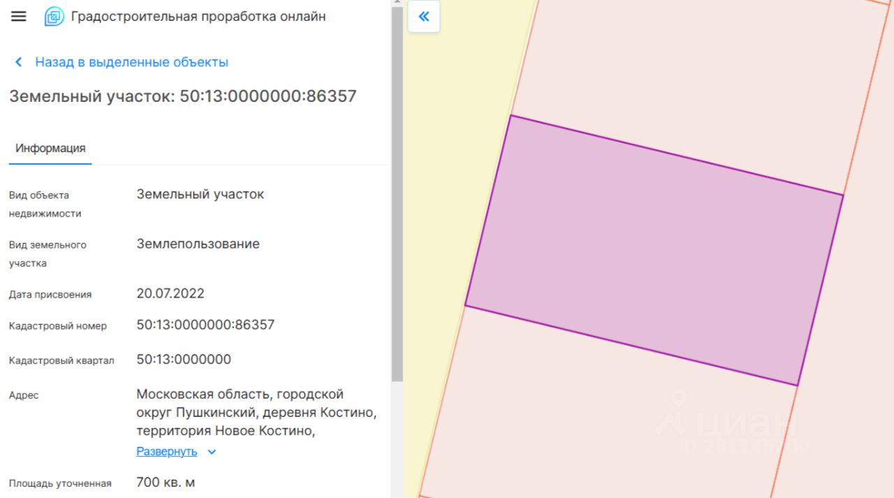 Продается участок 7 соток Ижс. кадастровый номер 50:31:0000000:86357
