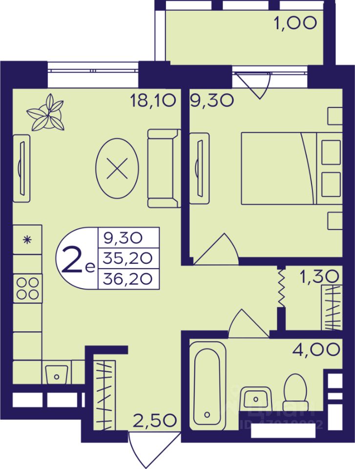 Общая площадь36,2 м2