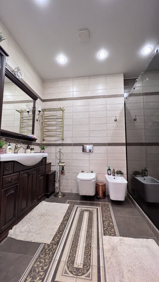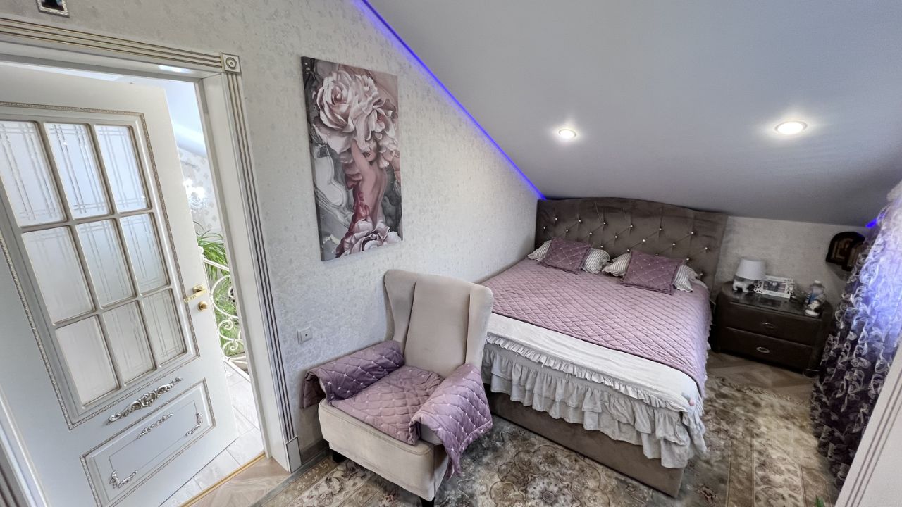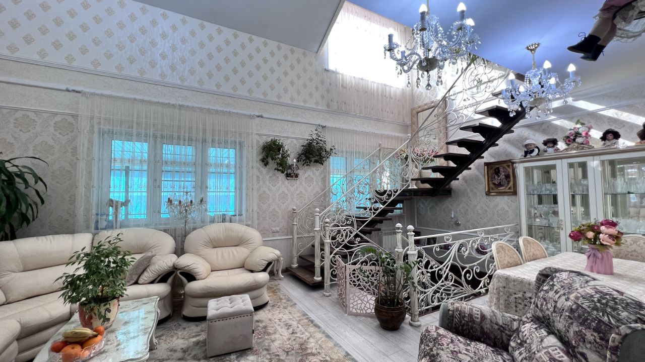 Дом: двухэтажный(три уровня) из газосиликатных блоков (утеплен, фасад: облицoвочный киpпич ), общей площадью 241 кв. м. (по факту-около 400 кв.м.).Толщина стен 60 см! Дом очень теплый. Высота потолков 3 метра! Состояние ремонта-великолепное.