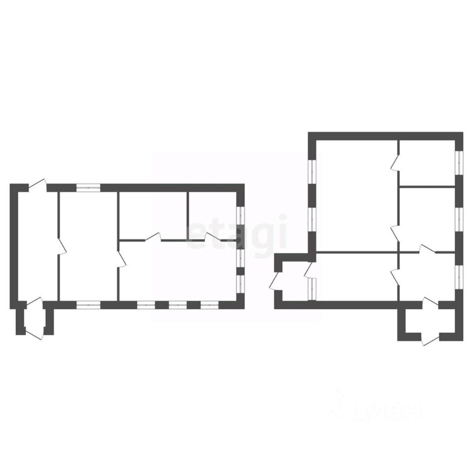 Есть 2 крыльца и 2 отдельных входа, что идеально подойдет для большой семьи. Всего 7 комнат, коридоры и кухня.