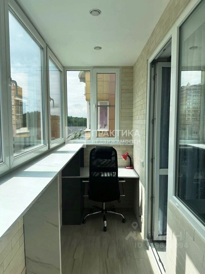 Окна выходят на улицу, на лоджии оборудовано рабочее место.