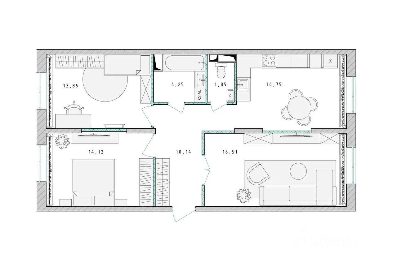 Продаётся 3-комнатная квартира в сданном доме (Корпус 1), срок сдачи: 4-кв. 2023, общей площадью 77.40 кв.м., на 6 этаже.