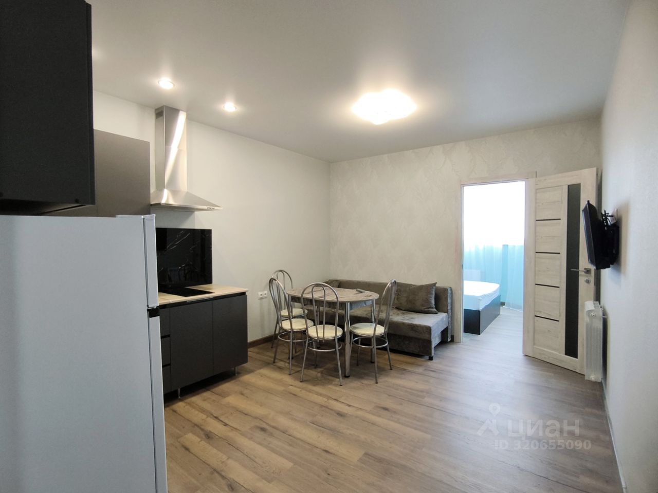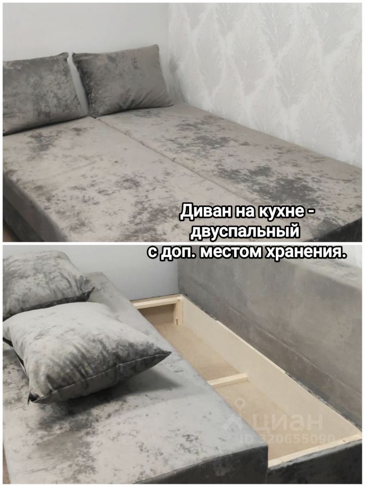 - мебель - двуспальная кровать, раскладной двуспальный диван, шкаф-купе, кухонный гарнитур с техникой.