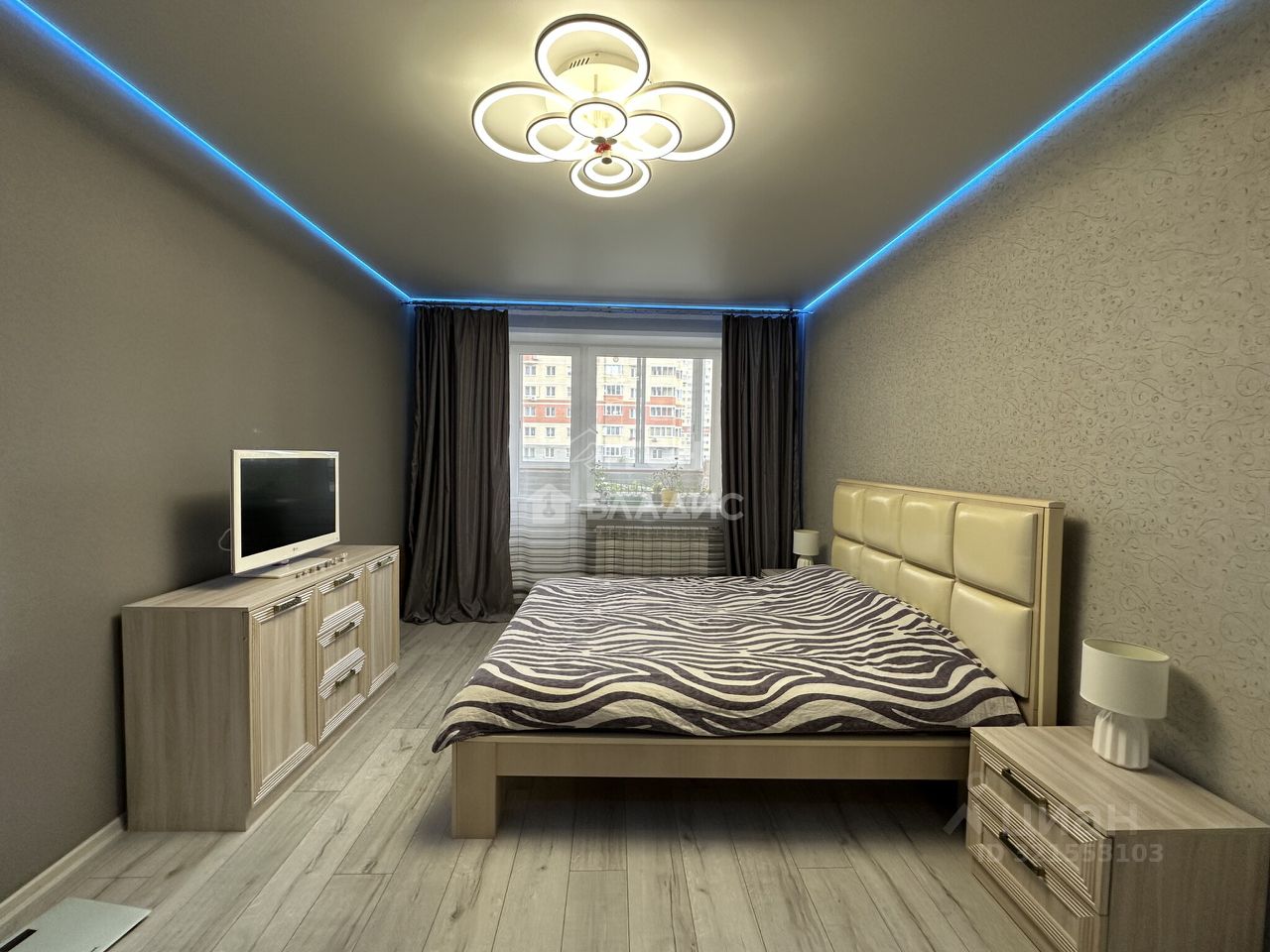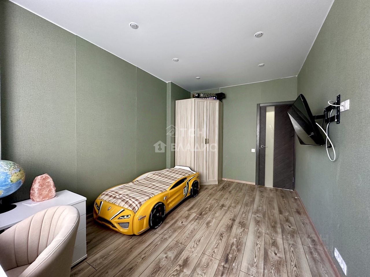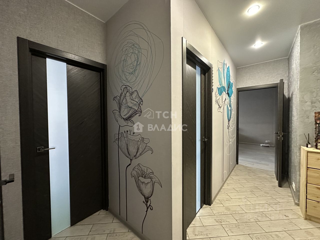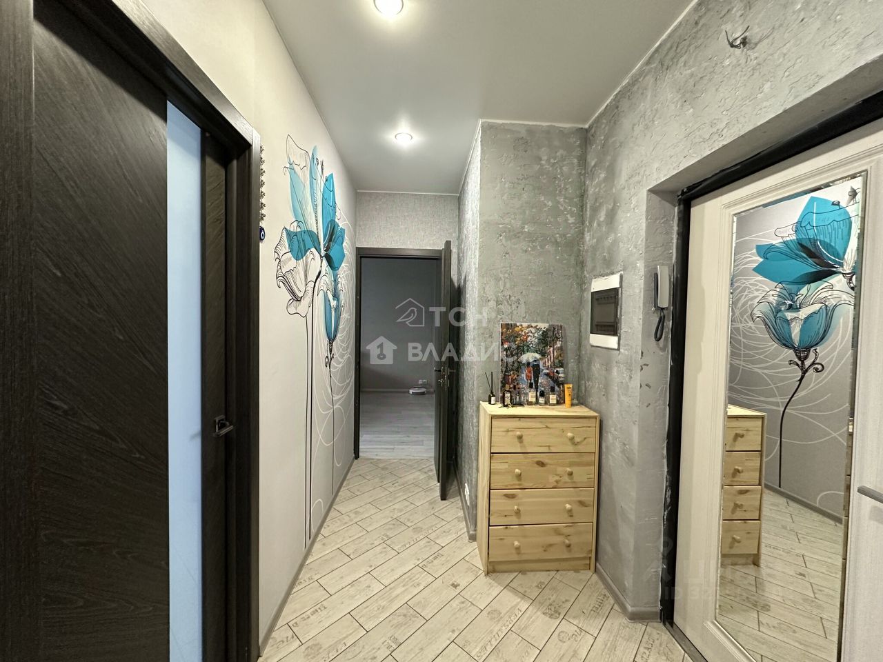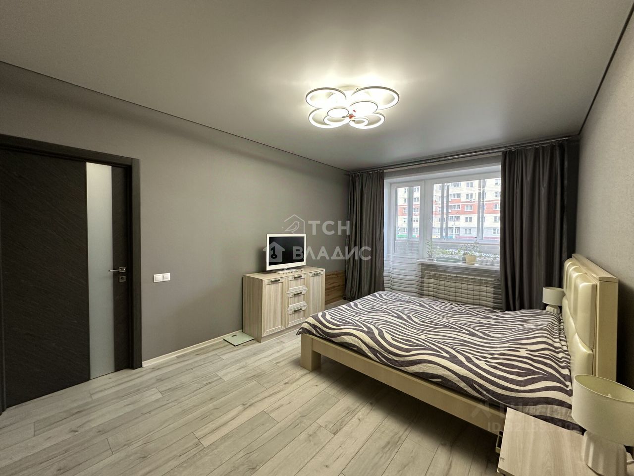 Расположение очень удобное — квартира находится в спокойном районе с развитой инфраструктурой.