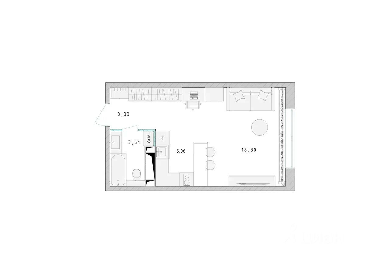 Продаётся студия в сданном доме (Корпус 1), срок сдачи: 4-кв. 2023, общей площадью 30.50 кв.м., на 17 этаже.