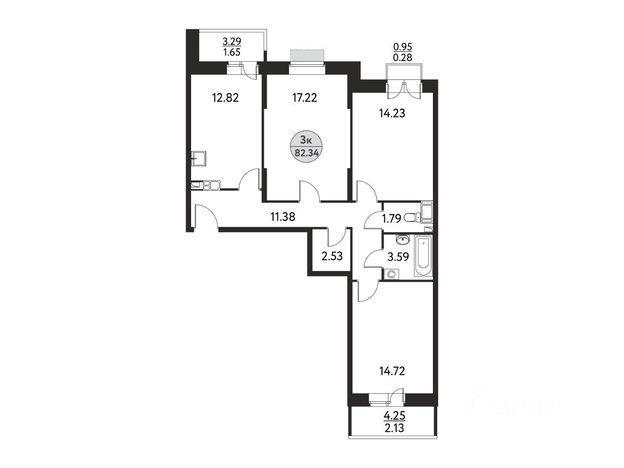 Общая площадь82,34 м2