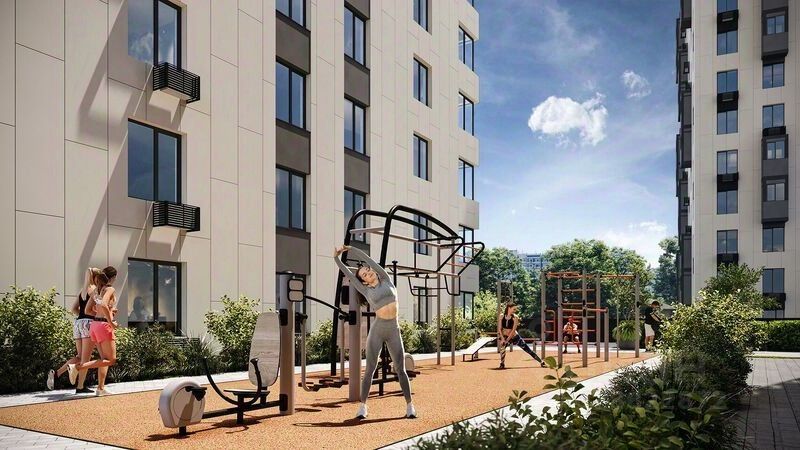 - Зеленый двор без машин, кленовая аллея для прогулок. - Нейродинамические площадки для детей разных возрастов. - Workout зона, столы для пинг-понга, места для занятия йогой.