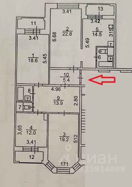 Четырехкомнатная квартира, г. Балашиха, ул. Солнечная, дом 20, этаж 14. Общая 120 кв.м. с лоджиями, без лоджий 113,6 кв.м., кухня 14,5 кв.м., три изолированные 12 кв.м., 18,6 кв.м., 19,2 кв.м. и гостиная 22,8 кв.м., три лоджии, два сан. узла.