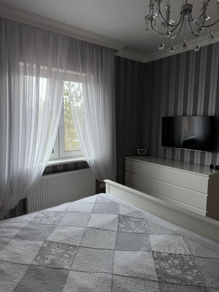 Сдается дом с гаражом 170 кВ м в окружении леса. Асфальтированная дорога. Дом оснащен видео наблюдаем по периметру, с авто включением света, охранной системой Гольфстрим, домофоном, антивандальные рольставни с электроприводом на всех окнах. Дом построен по проекту ( кп Княжье озеро, кп Вешки). Интересное планировочное решение дома, выигравшее Гран-при, как самая лучшая планировка. Интерьеры в классическом стиле. 3 спальни, кухня,оборудованая техникой (посудомоечная машина,встроенный холодильник, многофункциональный духовой шкаф, полноценная вытяжка, встроенная варочная поверхность), столовая, гостиная с электрокамином, терраса с панорамными окнами, санузлы на каждом этаже, кладовая, гардеробные в каждой комнате, постирочная со стиральной машиной, кондиционеры в каждом помещении. Котельная оборудована: американской системой очистки воды, бойлер горячей воды на 200 л., 3х фазный котел отопления PROTERM. Все остается по вашему желанию. Есть отдельное помещение, оборудованное водой, душем, отоплением для проживания помощника для дома. 3х фазный дизельный генератор 10квт с автозапуском. Канализация Топаз. Скважина 43 м. Участок 6 соток, ландшафтный дизайн, ухожен. Стоянка для 3х автомобилей. Гостевой дом с сауной, кухней, открытой террасой, кондиционером, стиральной машиной. Финский гриль дом с посадкой на 8 человек. Зона для барбекю. Подготовленная площадка для бассейна. Откатные ворота с электроприводом.